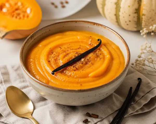 Dovleac fiert și pasat cu puțin lapte și vanilie naturală — dulce natural, cremos și bogat în vitamine. Perfect pentru copiii de 1-3 ani, fără zahăr adăugat, fără alergeni majori.
