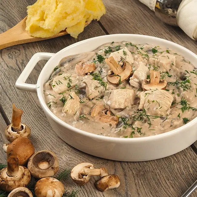 Pui fraged și ciuperci moi într-un sos alb cremos și catifelat — un clasic românesc adorat de copiii mai mari. Simplu, consistent și gata în 30 de minute.